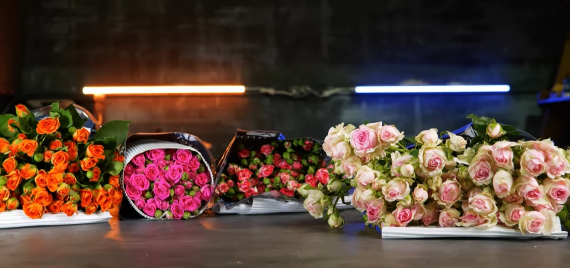 К нам на распаковку попал микс роз длиной 60 см. В коробке было 300 стеблей сортов Tessa, Reflex, Firefox, Dinara, Salinero. Первое, что нас интересовало - качество и характеристики роз. Мы хотели убедиться в том, что плантация продолжает радовать крупными, тяжелыми розами, которые нам удалось увидеть во время последнего посещения компании.