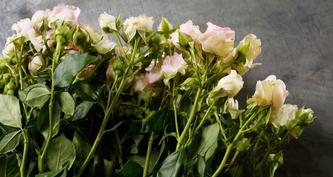 Самой объемной оказалась пачка с сортом Salinero. Это - нежные, почти белые цветы со светло-розовой сердцевиной. На каждом стебле было сосредоточено по 5-6 соцветий. Они оказались некрупными, но плотными. За счет большого количества бутонов на стебле из этих роз можно получить пышный букет, собрав воедино 9-11 цветков.