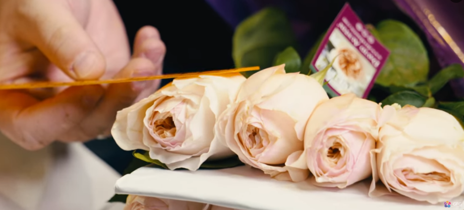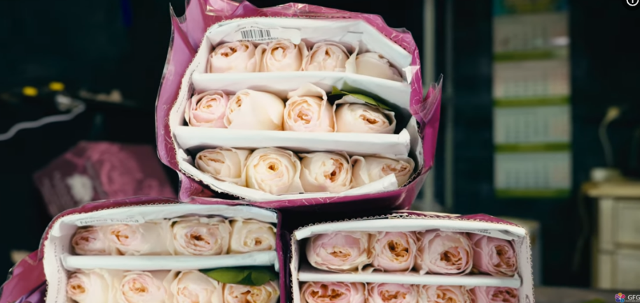 Но вернемся к самой романтичной и изысканной розе Джульетта, которая оказалась на нашем складе в одной из поставок. Итак, цветы от Alexandra Farms были упакованы премиально. Банчи состояли из 12 роз, уложенных в 3 ряда. Между каждым из них был проложен картон, а сама пачка обернута в брендированную упаковку.